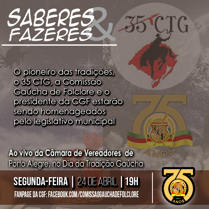 Programa Saberes e Fazeres – 107 – Homenagem 35 CTG, Comissão Gaúcha de Folclore e ao Presidente da CGF