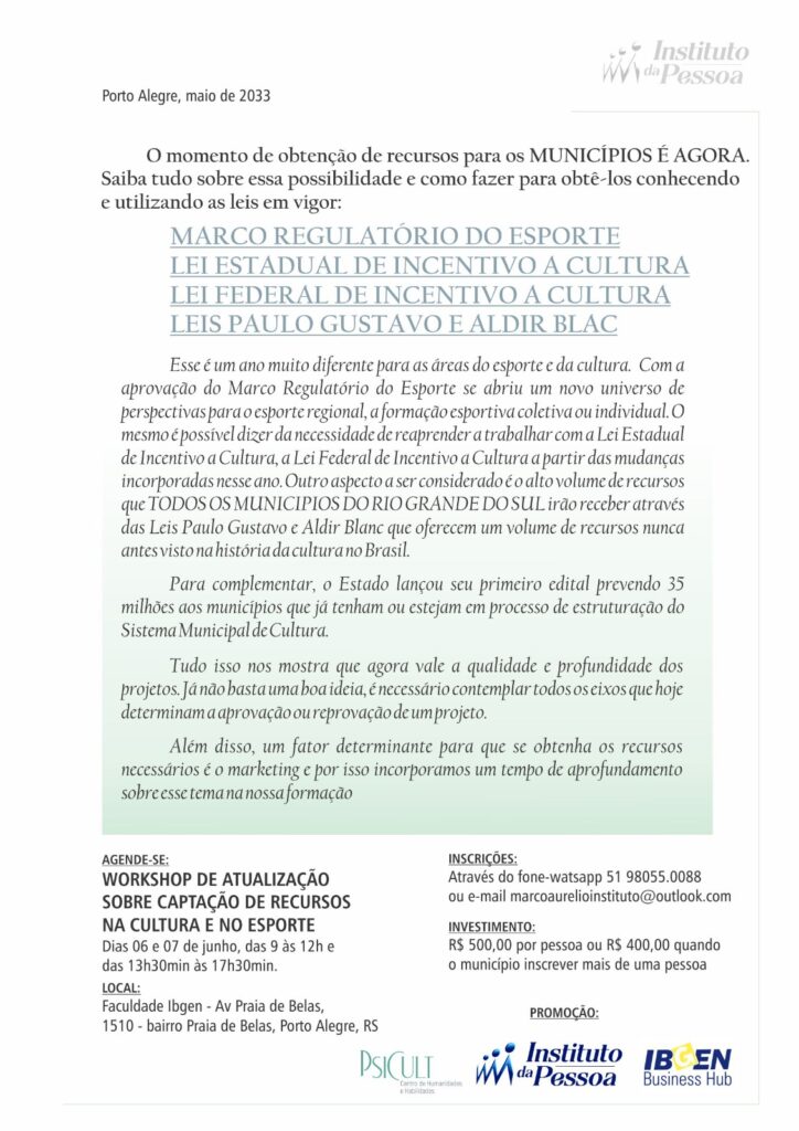 Workshop de atualização sobre captação de recursos na cultura e no esporte