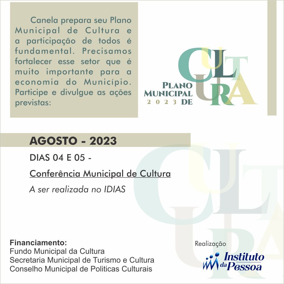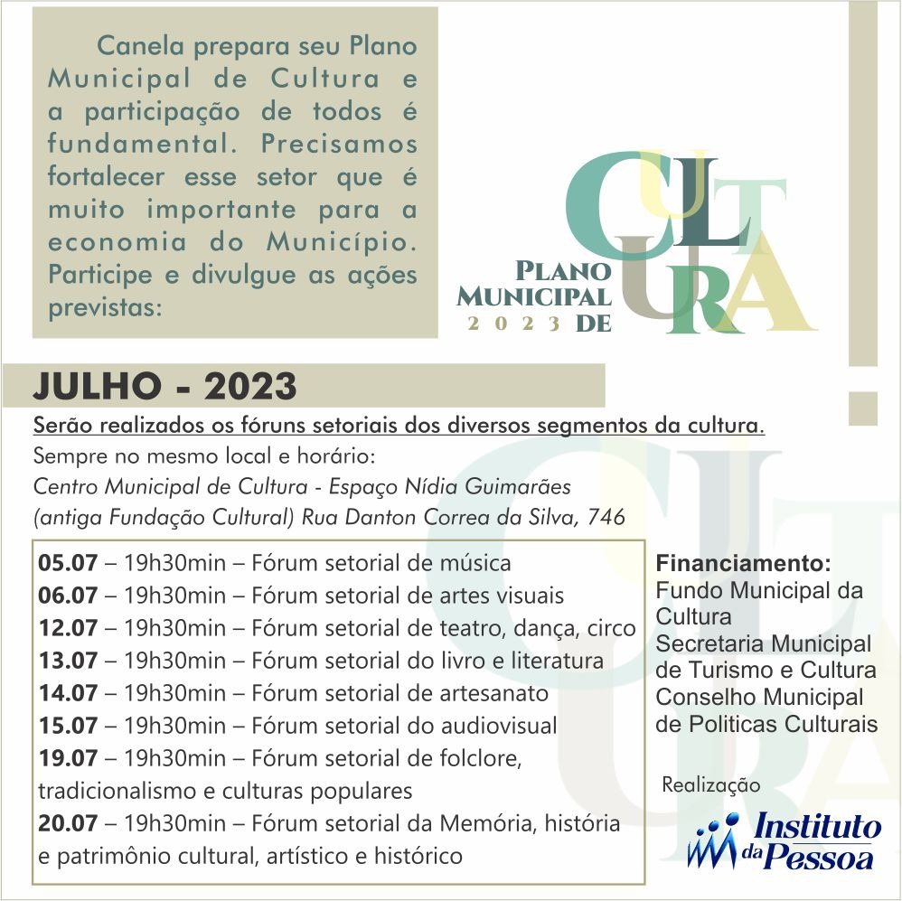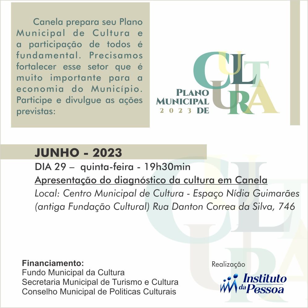 Plano Municipal de Cultura 2023 de Canela Deixe um comentário / Sem categoria / Por Psicult Humanidades