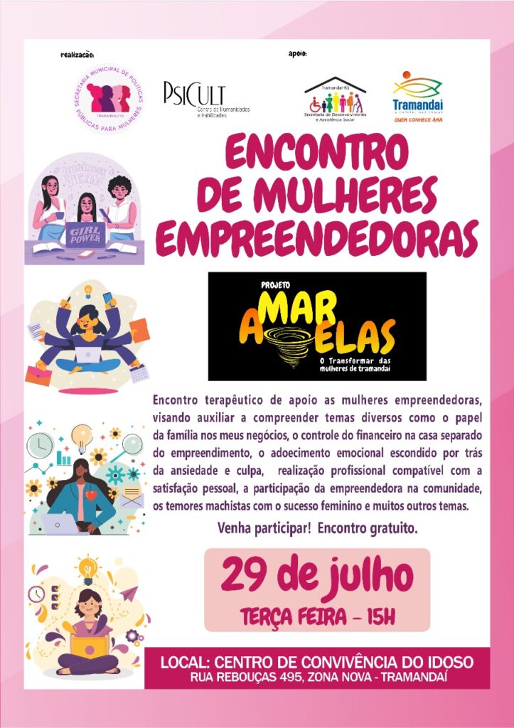 No dia 29 de julho (terça-feira), às 15h, será realizado o Encontro de Mulheres Empreendedoras no Centro de Convivência do Idoso, em Tramandaí. A atividade é gratuita e aberta ao público feminino.